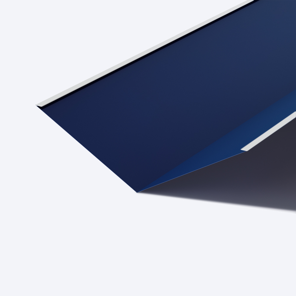 Планка ендовы нижняя – обязательный элемент для отделки кровли. Она защищает пространство между двумя скатами крыши, образующими внутренний угол. Предотвращает попадание влаги в подкровельное пространство, отводя воду со стыка двух скатов. Ендова нижняя имеет подгибы с краев, для предотвращения перелива воды. Вода по ней стекает до края крыши или в установленную водосточную систему.